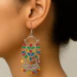 Add a vibrant touch of tradition to your look with these Multicolor Leaf Design Oxidized Silver Dangle Earrings. Crafted with intricate detailing, these earrings feature colorful enamel leaf patterns beautifully set on an oxidized silver base. The dangling beads in bright hues enhance their charm, making them perfect for festive occasions, casual outings, or ethnic wear styling. Lightweight and comfortable, they are designed to suit both modern and traditional outfits.